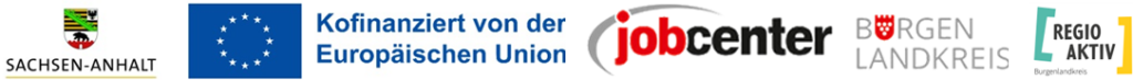 Das Projekt wird gefördert über die Richtlinie REGIO AKTIV aus Mitteln des Europäischen Sozialfonds plus und des Landes Sachsen-Anhalt sowie des Jobcenter Burgenlandkreis. Kofinanziert von der Europäischen Union.