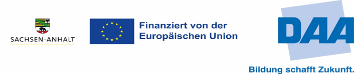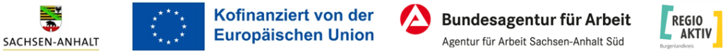 Das Projekt wird gefördert über die Richtlinie REGIO AKTIV aus Mitteln des Europäischen Sozialfonds plus und des Landes Sachsen-Anhalt sowie der Agentur für Arbeit Sachsen-Anhalt Süd. Kofinanziert von der Europäischen Union